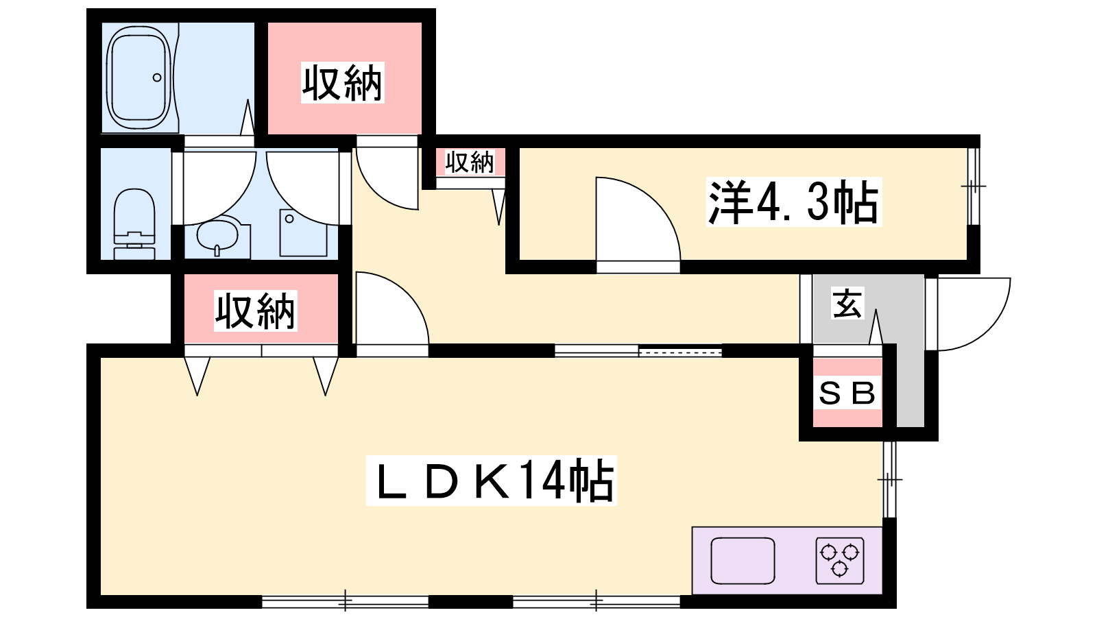 - LDK14帖、洋室4.3帖