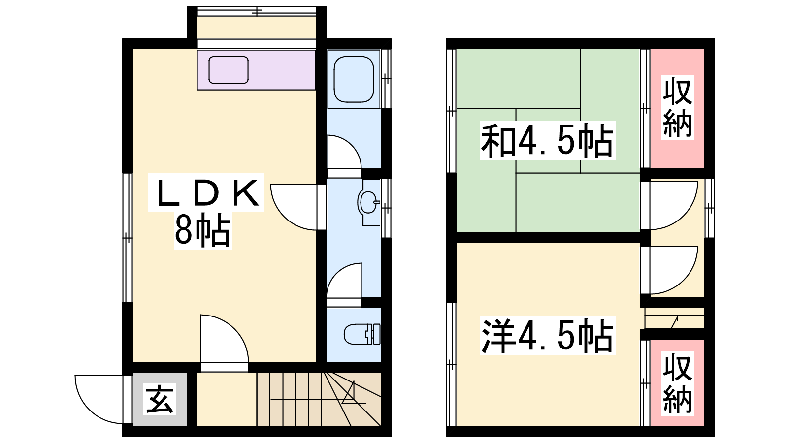 - LDK8帖、洋室4.5帖、和室4.5帖