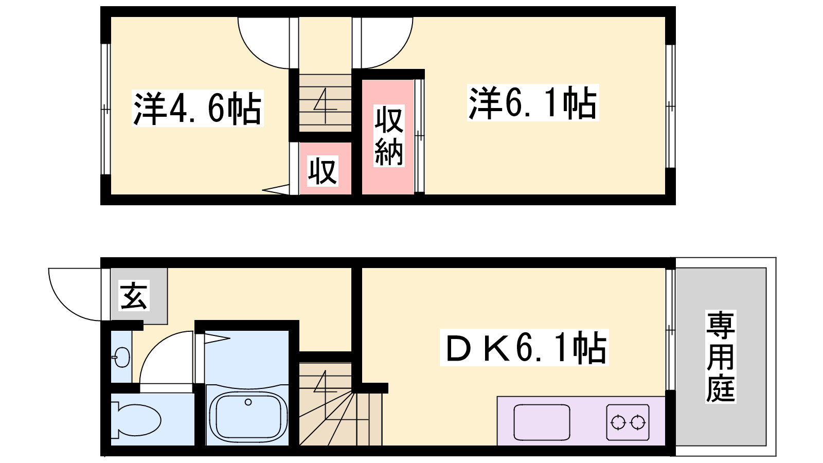 - DK6.1帖、洋室6.1帖、洋室4.6帖