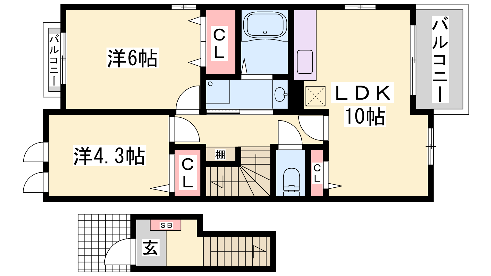 - LDK10帖、洋室6帖、洋室4.3帖