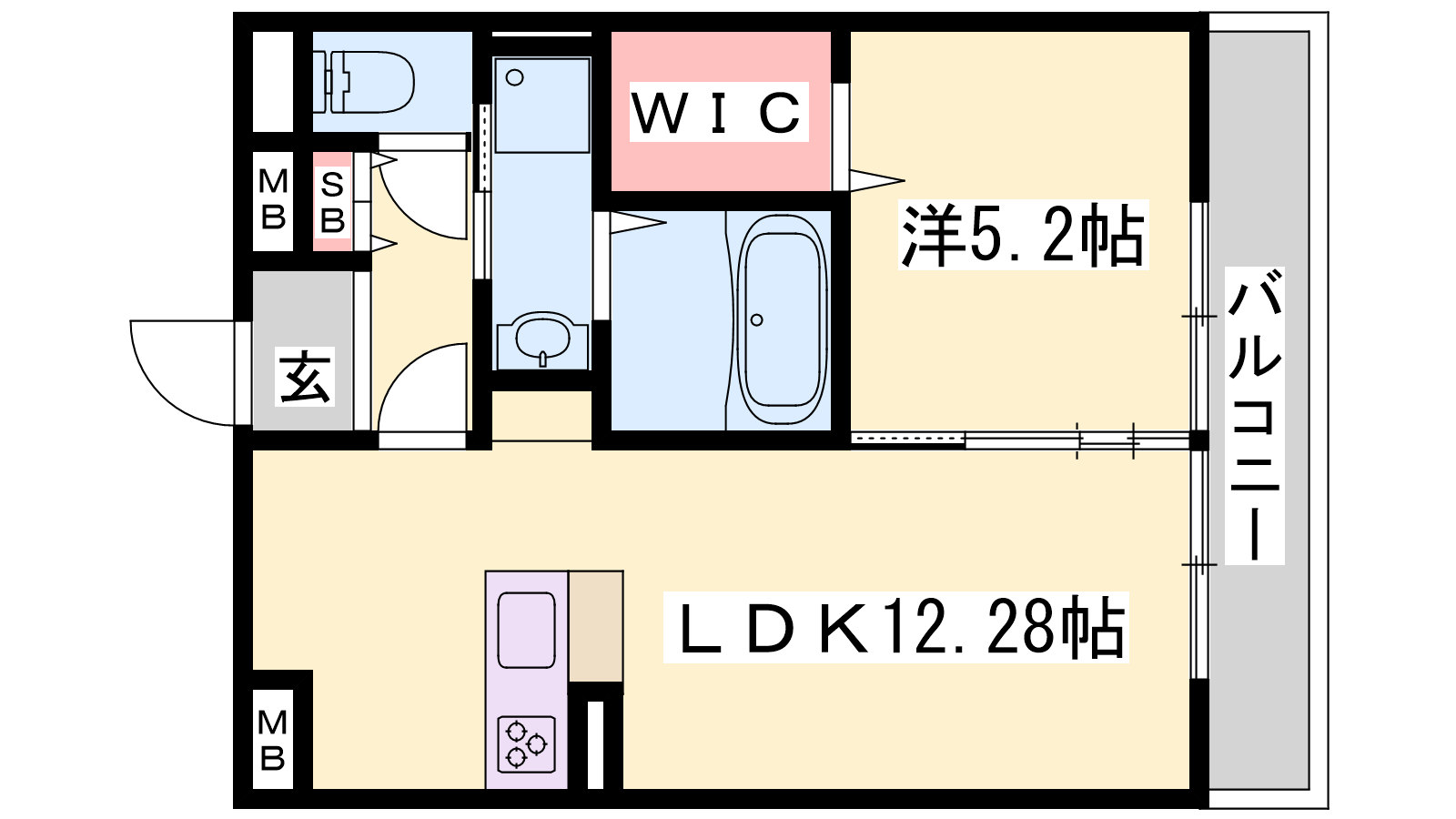 - LDK12.28帖、洋室5.2帖