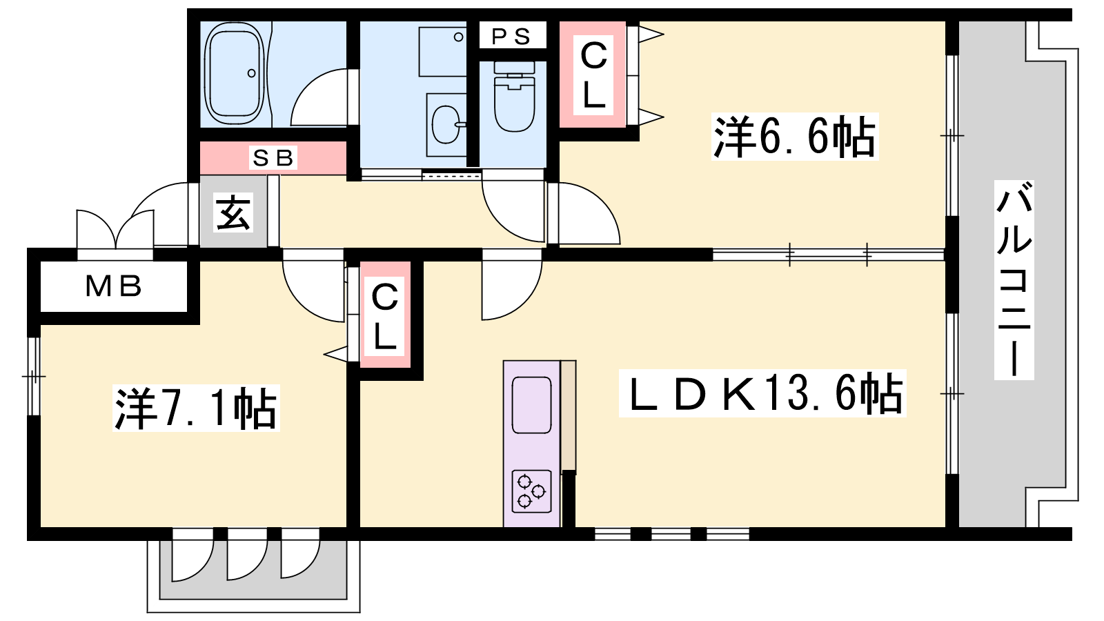- LDK13.6帖、洋室7.1帖、洋室6.6帖