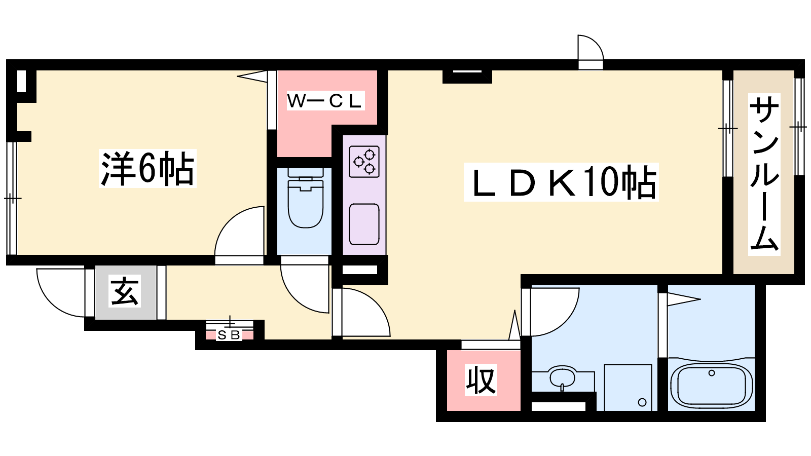 - LDK10帖、洋室6帖