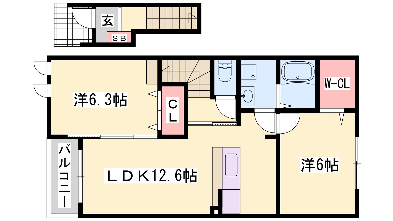 - LDK12.6帖、洋室6.3帖、洋室6帖