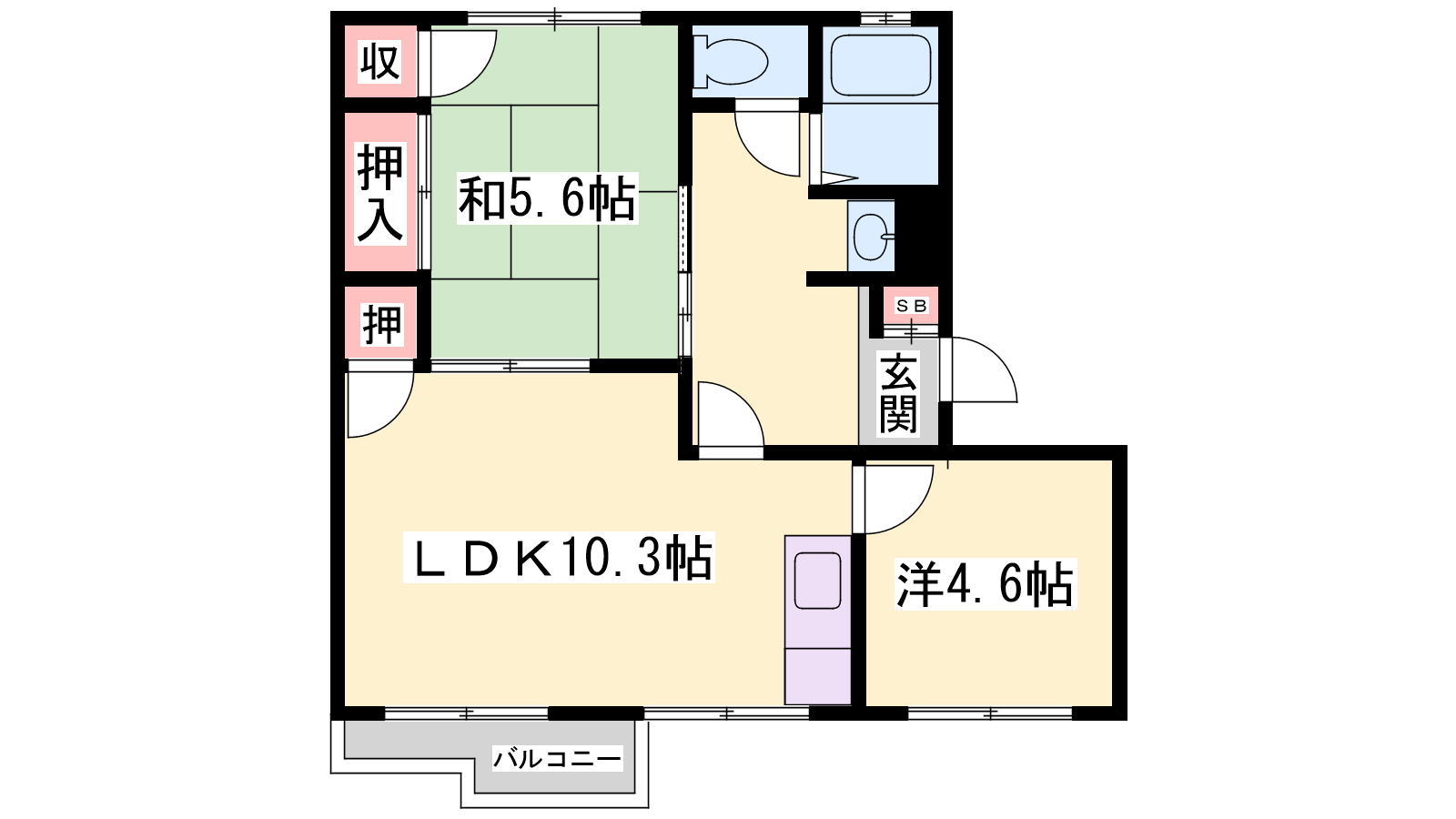- LDK10.3帖、洋室4.6帖、和室5.6帖