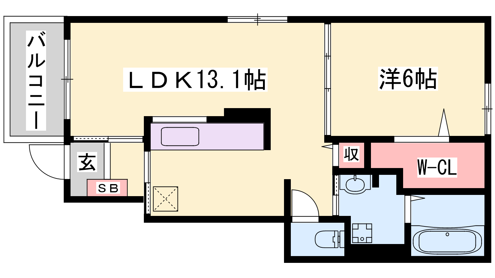 - LDK13.1帖、洋室6帖