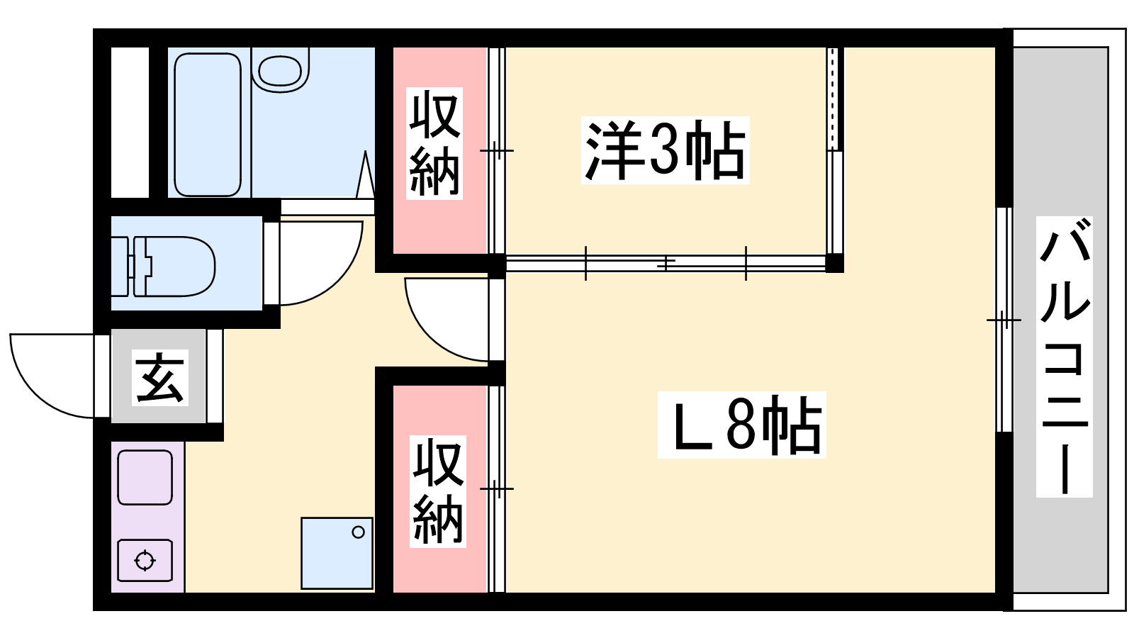 - L8帖、洋室3帖
