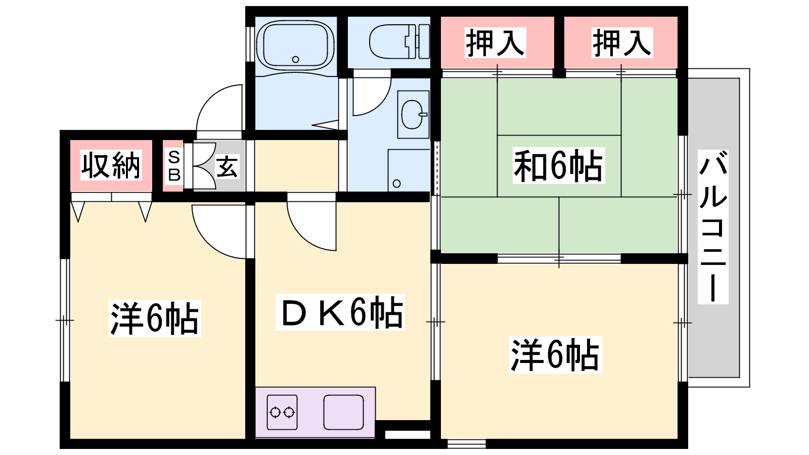- DK6帖、洋室6帖、洋室6帖、和室6帖