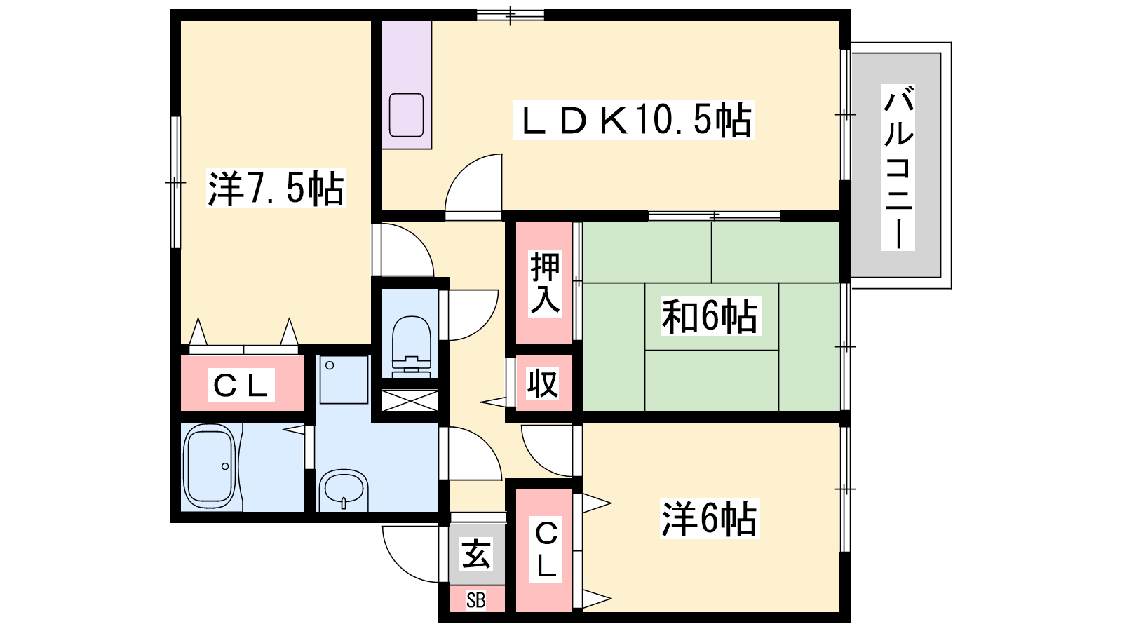 - LDK10.5帖、洋室7.5帖、洋室6帖、和室6帖