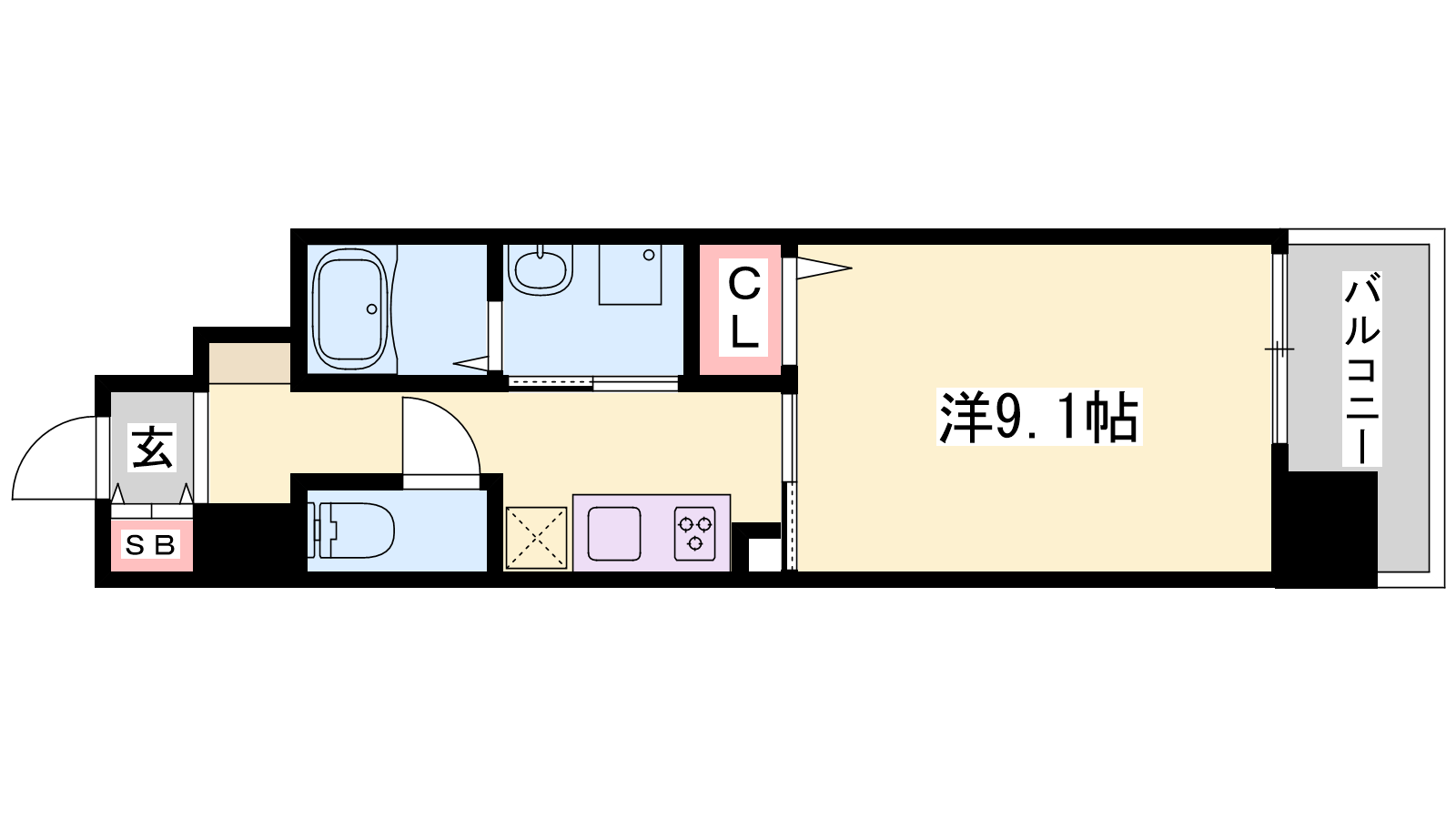 - K2.5帖、洋室9.1帖
