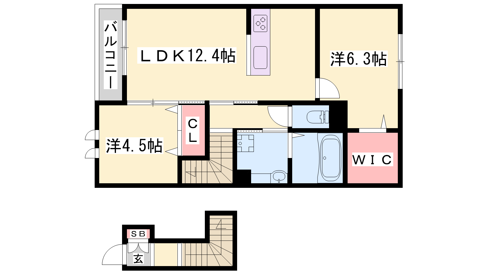 - LDK12.4帖、洋室6.34帖、洋室4.58帖