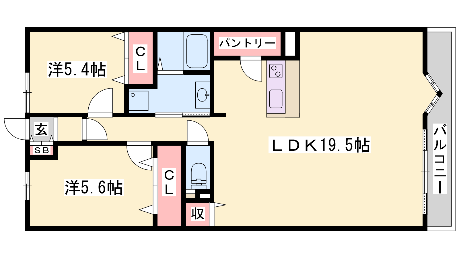 - LDK19.5帖、洋室5.6帖、洋室5.4帖