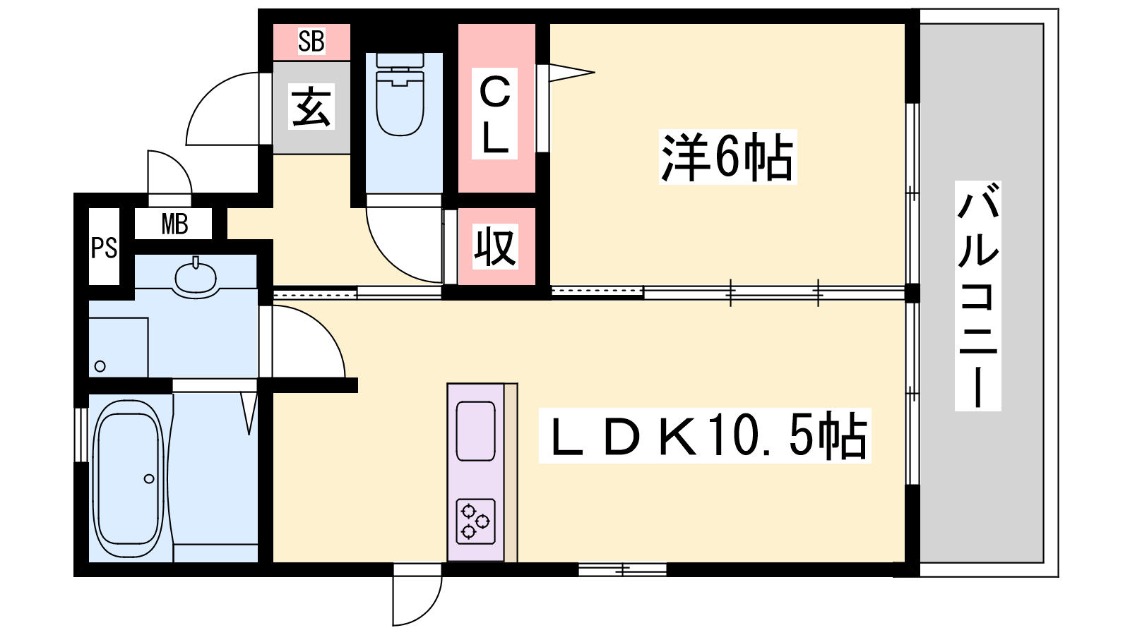 - LDK10.5帖、洋室6帖