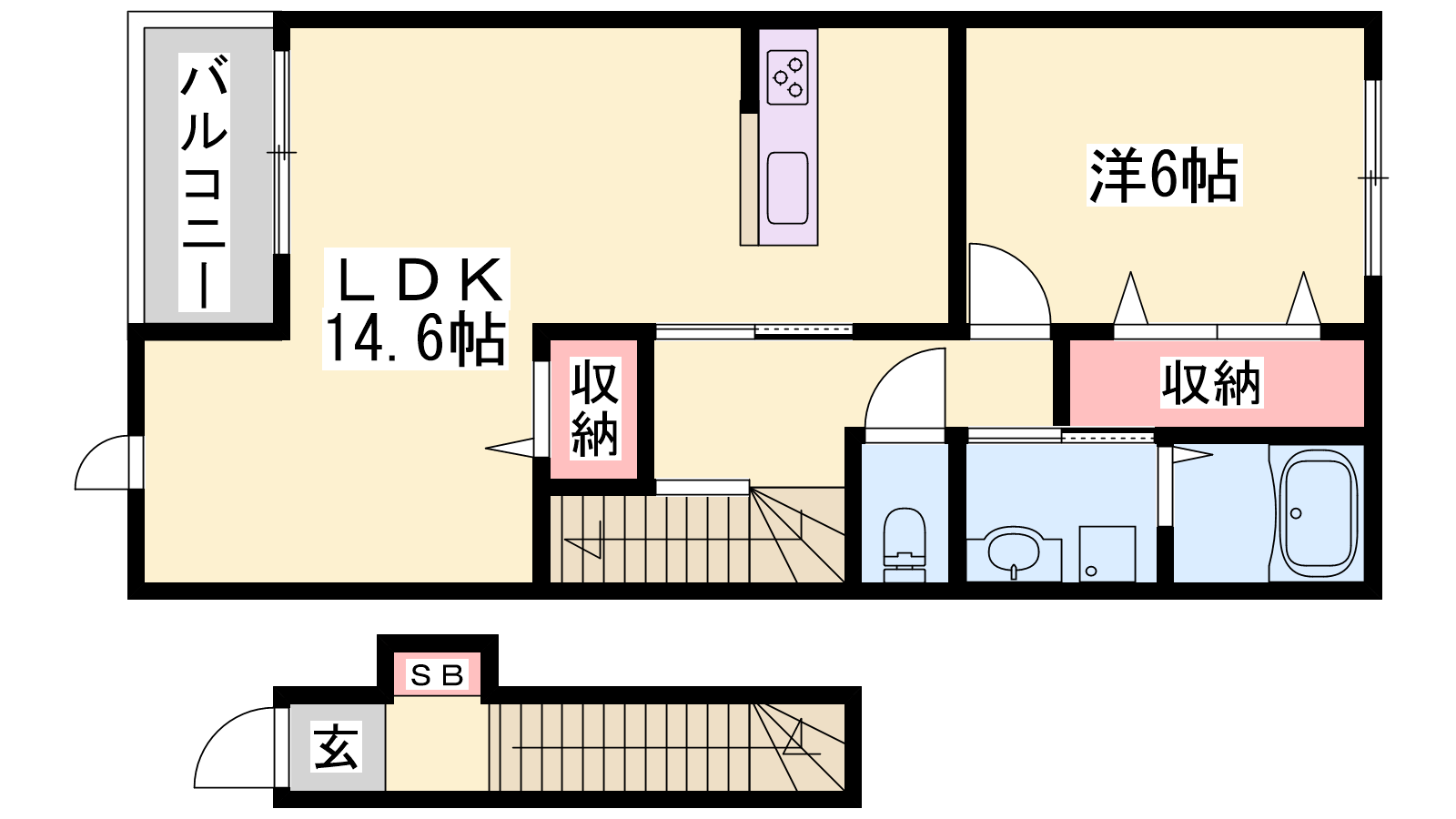 - LDK14.6帖、洋室6帖