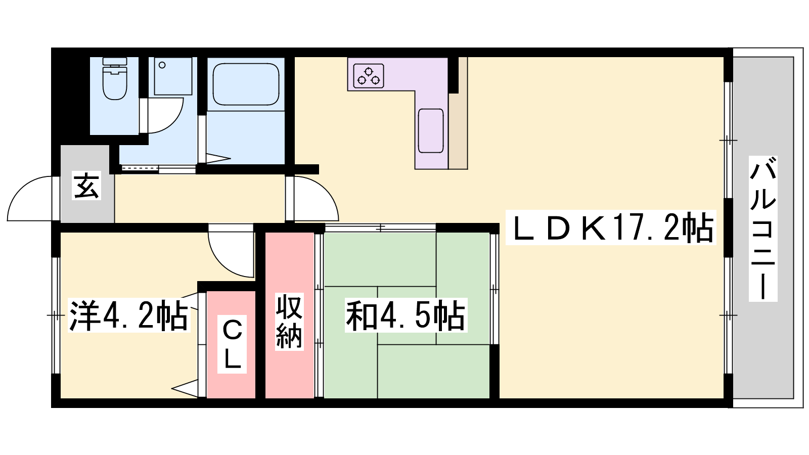 - LDK17.2帖、洋室4.2帖、和室4.5帖