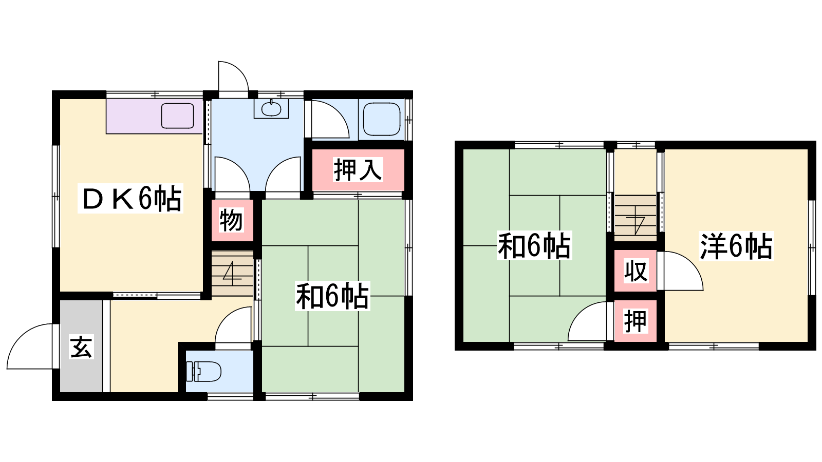 - DK6帖、洋室6帖、和室6帖、和室6帖