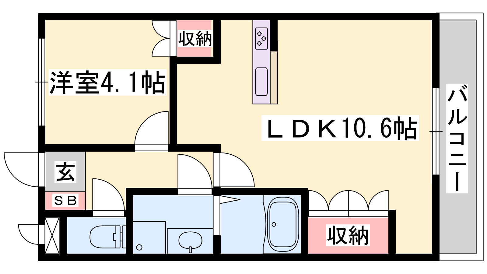 - LDK10.6帖、洋室4.1帖
