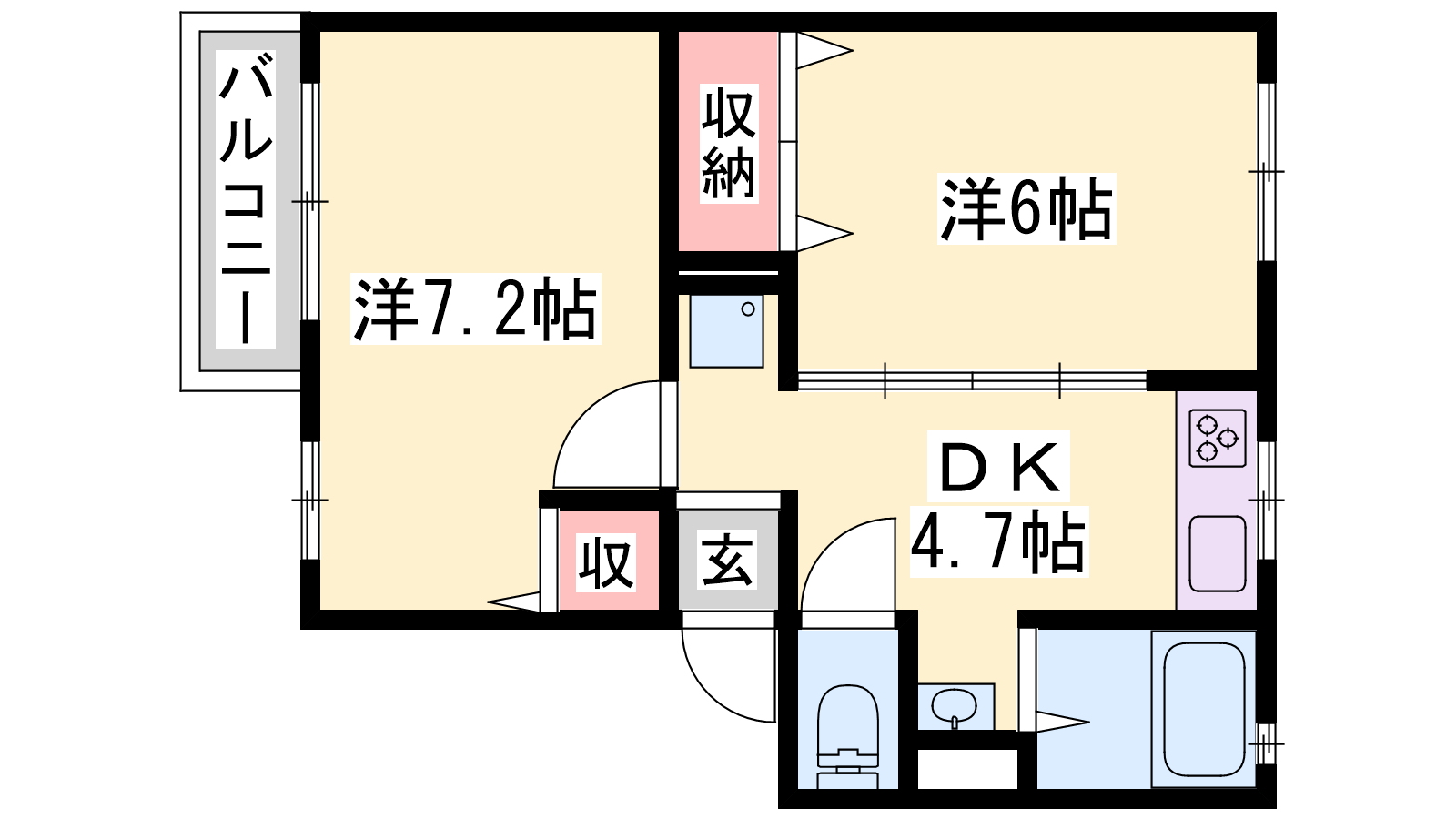 - DK4.7帖、洋室7.2帖、洋室6帖