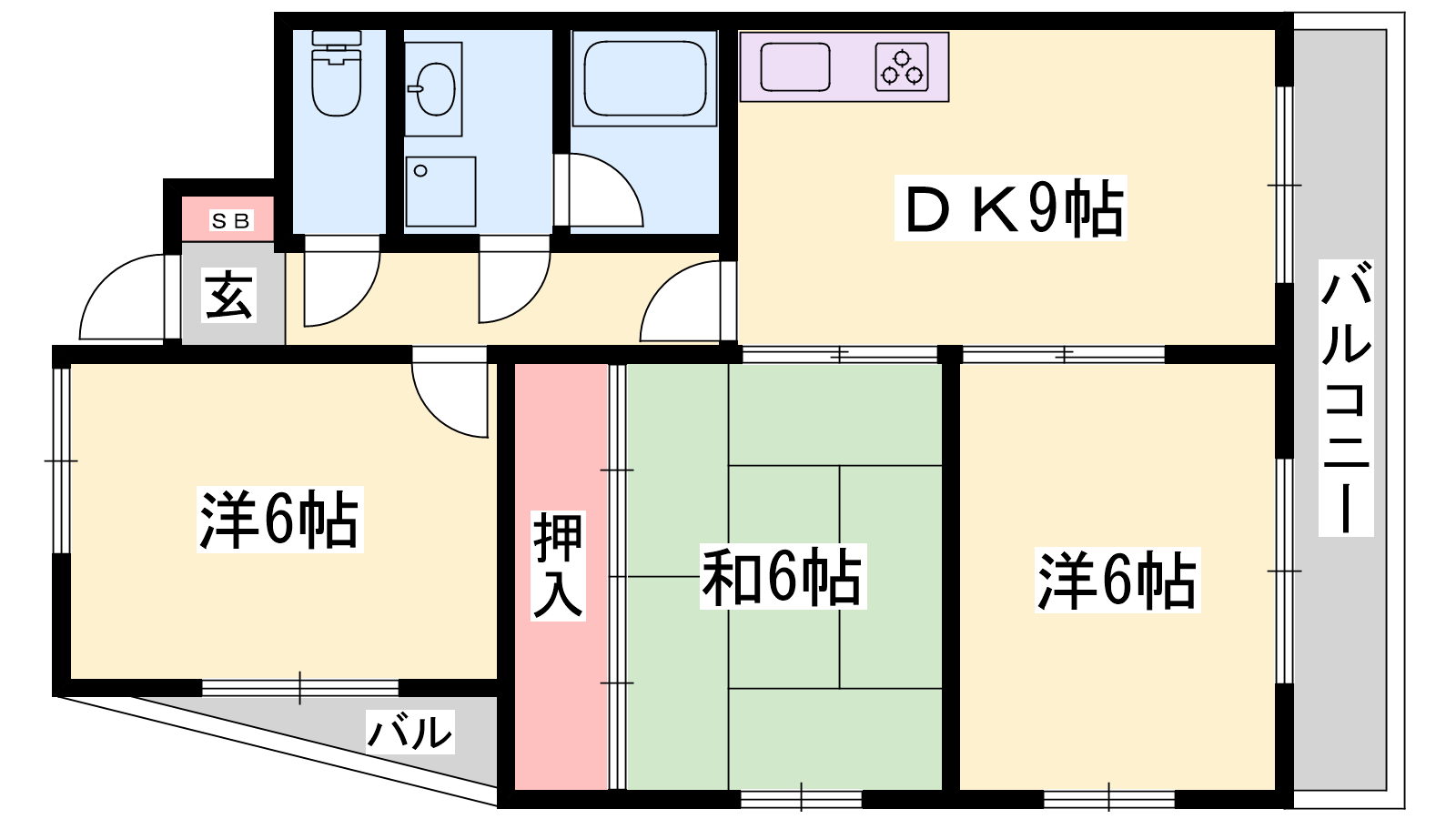 - DK7.5帖、洋室6帖、洋室6帖、和室6帖