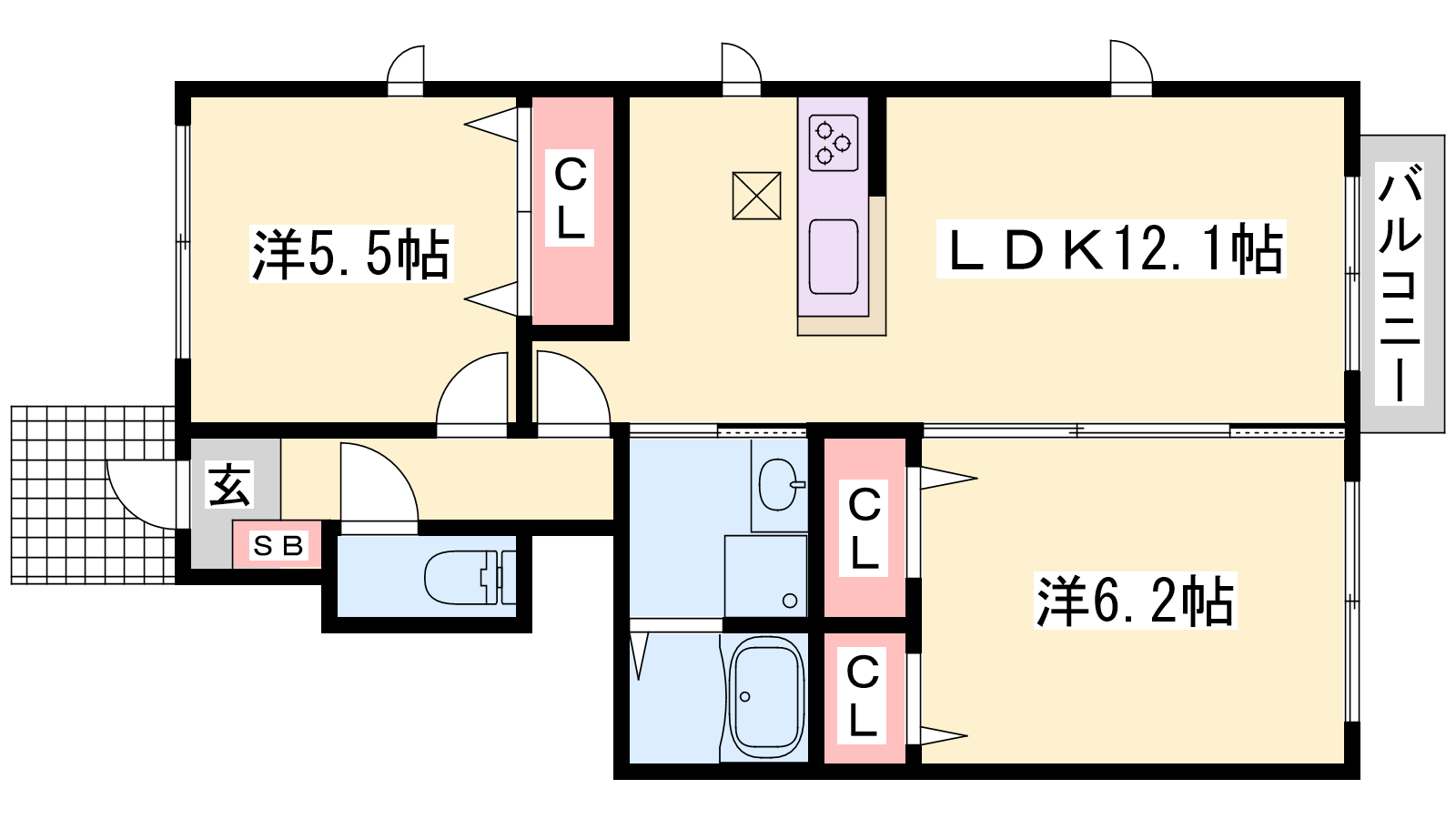 - LDK12.1帖、洋室6.2帖、洋室5.5帖