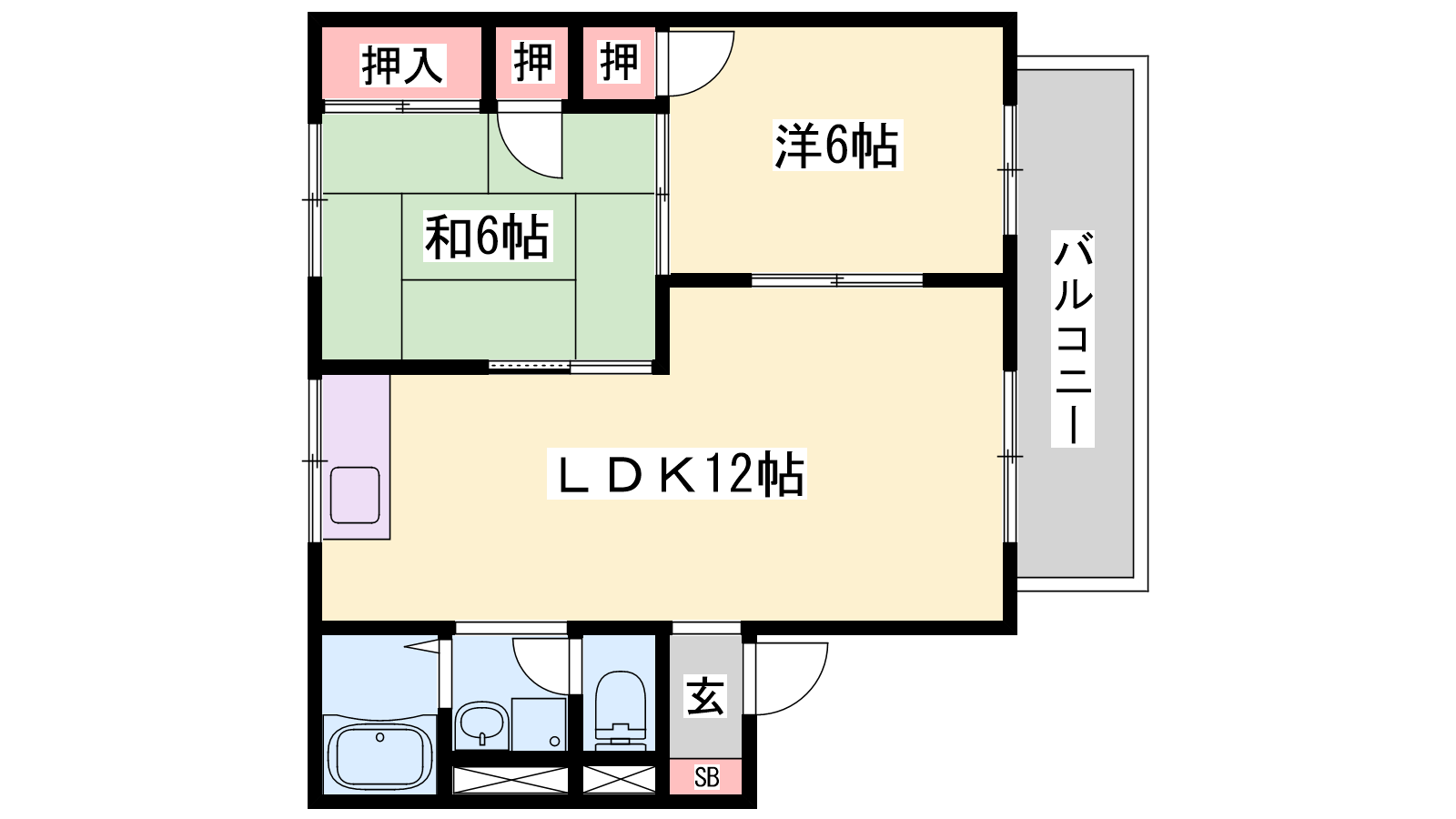 - LDK12帖、洋室6帖、和室6帖