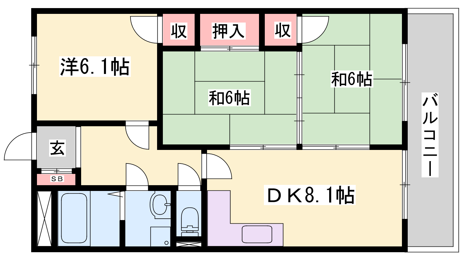 - DK8.1帖、洋室6.1帖、和室6帖、和室6帖