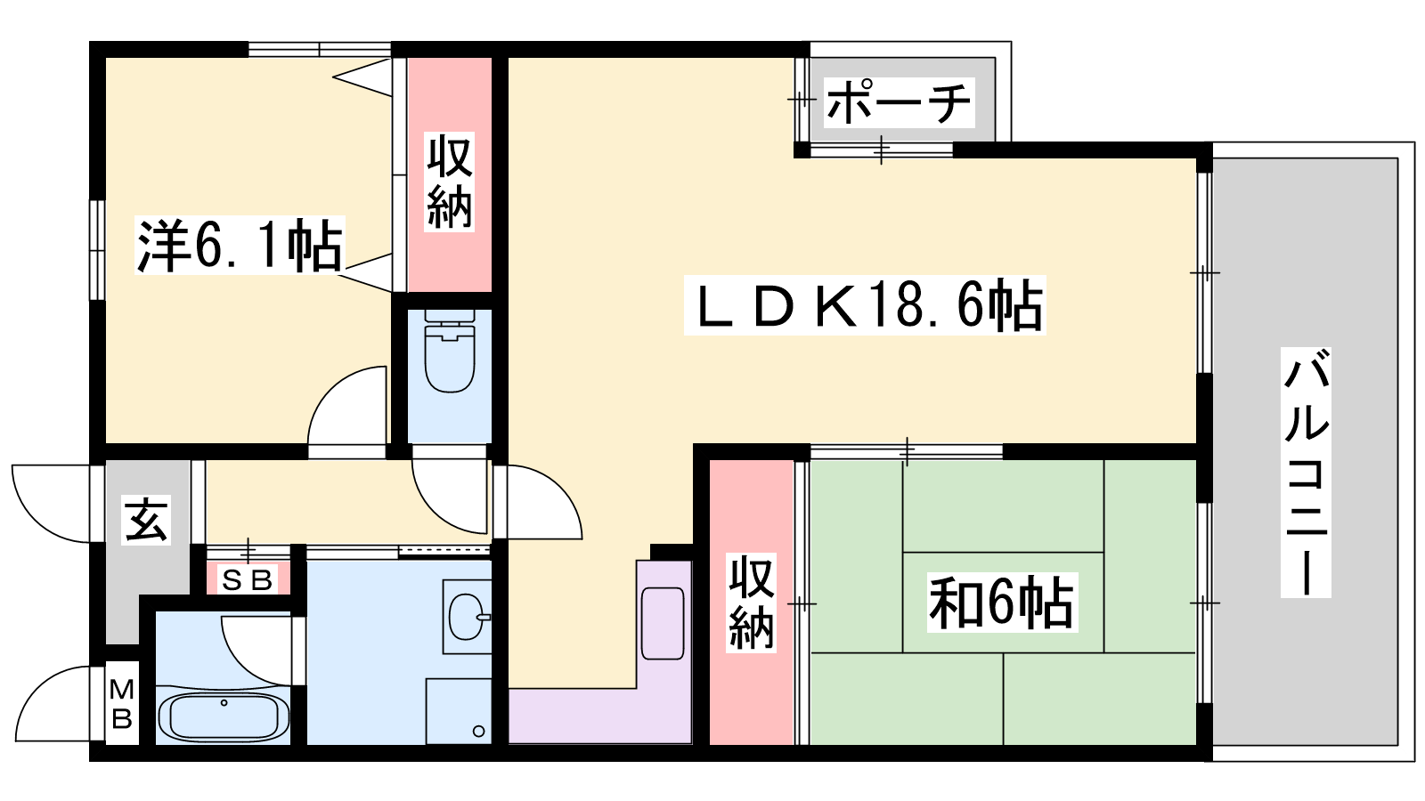 - LDK18.6帖、洋室6.1帖、和室6帖
