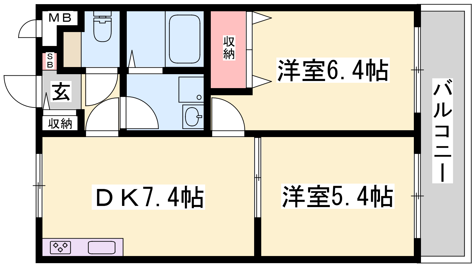 - DK7.4帖、洋室6.4帖、洋室5.6帖