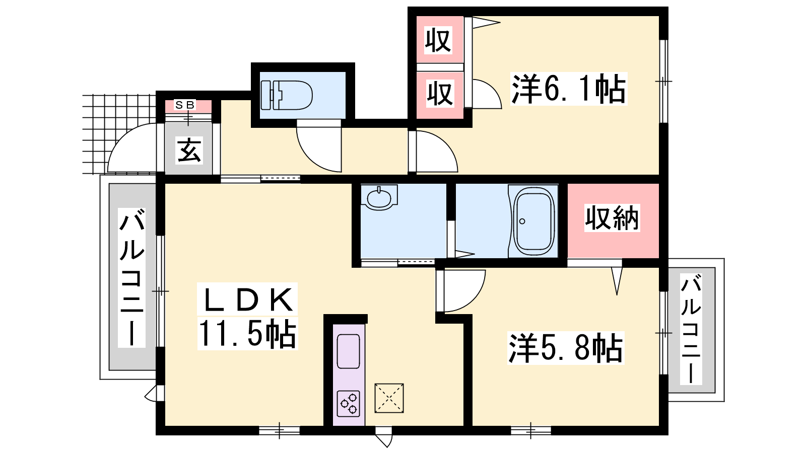 - LDK11.5帖、洋室6.1帖、洋室5.8帖