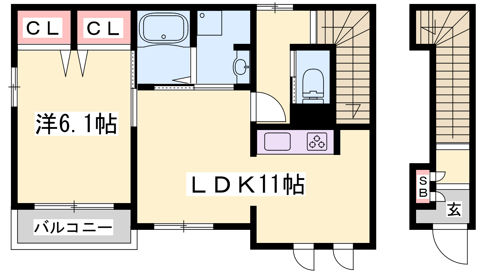- LDK11帖、洋室6.1帖