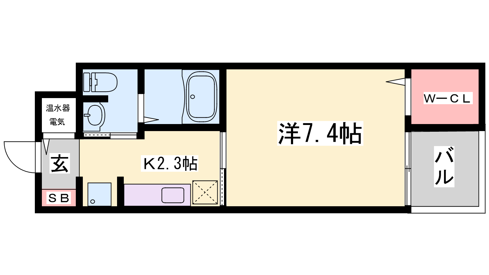 - K2.3帖、洋室7.4帖