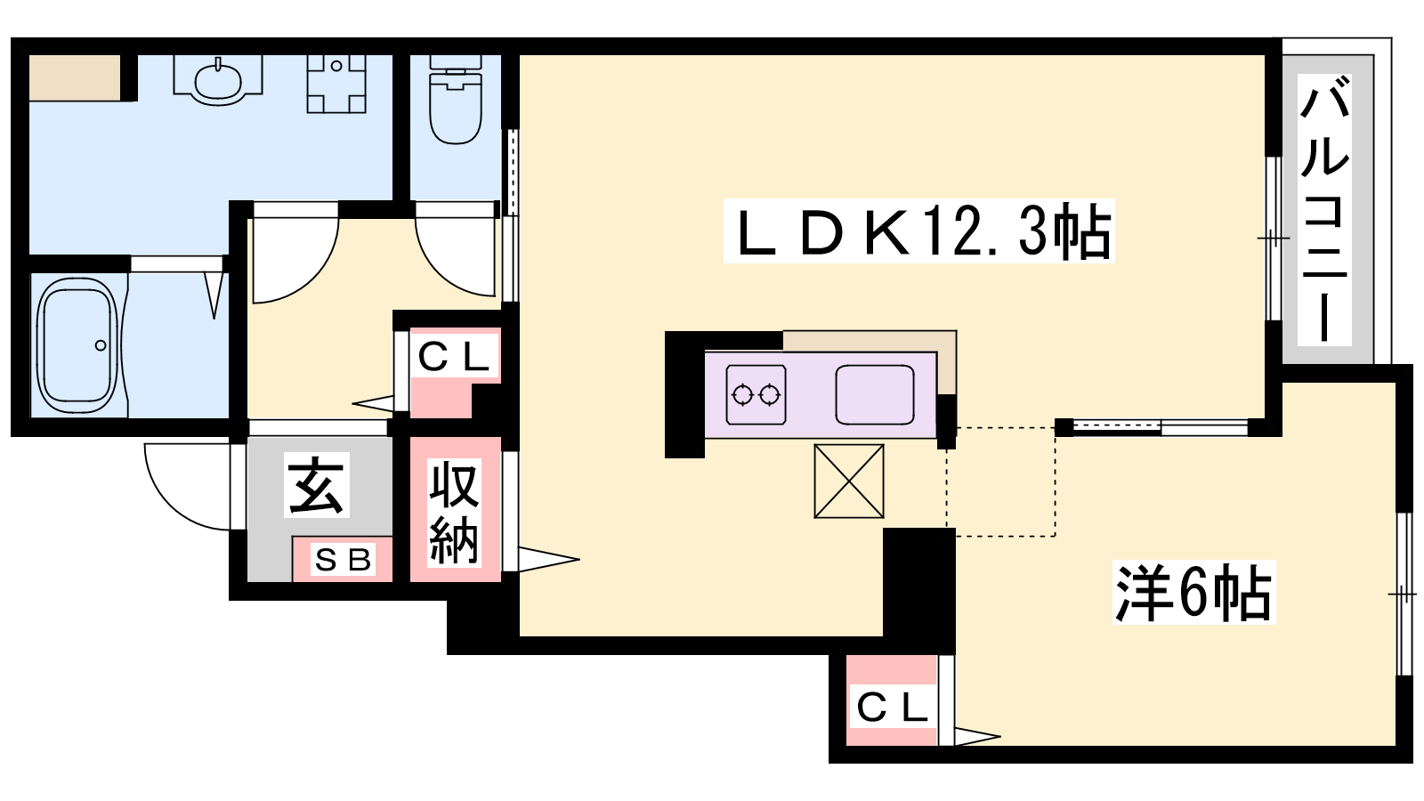 - LDK12.3帖、洋室6帖