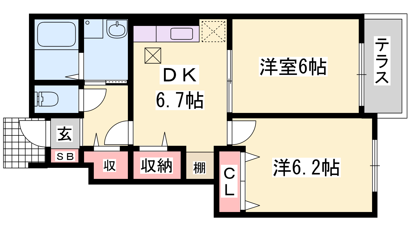- DK6.7帖、洋室6帖、洋室6.2帖