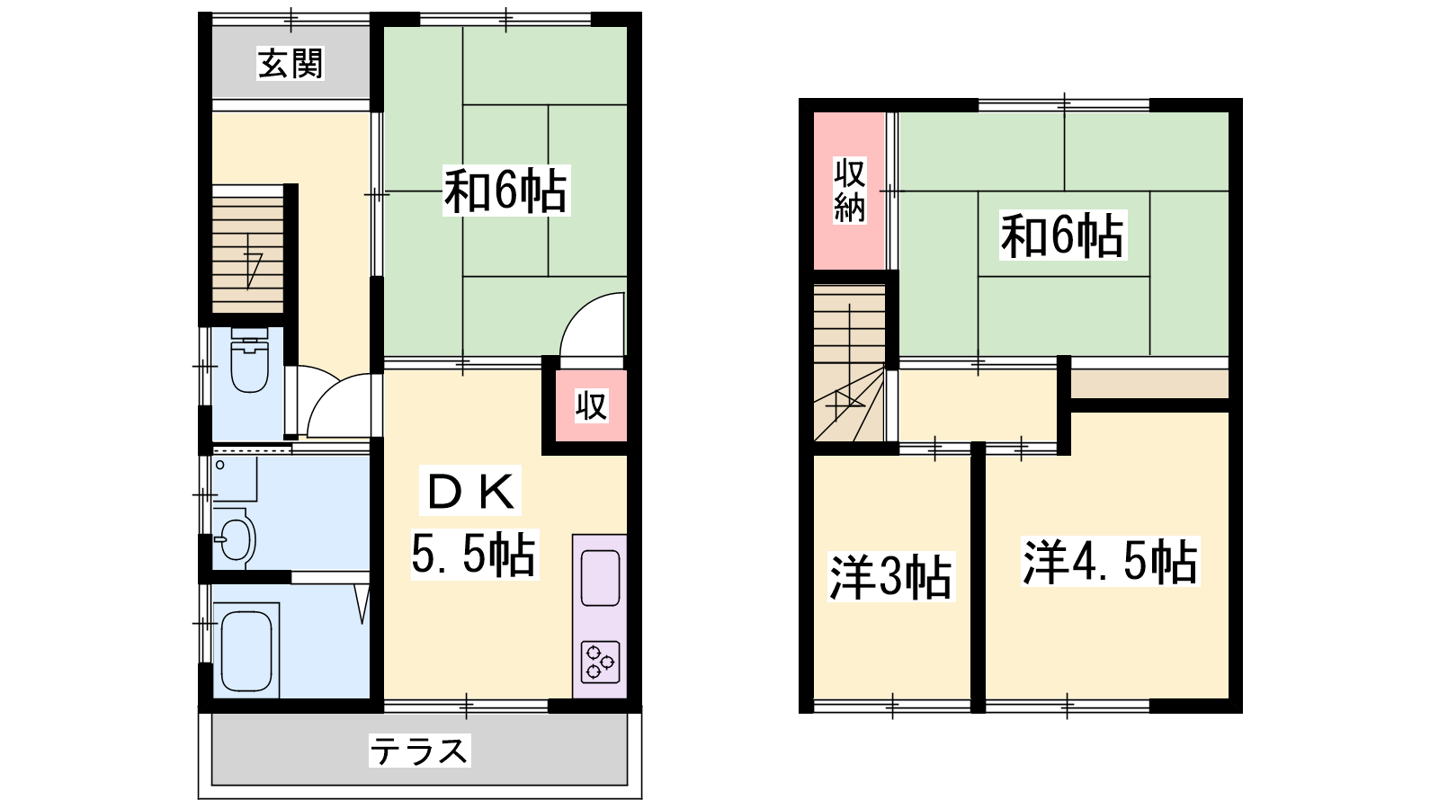 - DK5.5帖、洋室4.5帖、洋室3帖、和室6帖、和室6帖