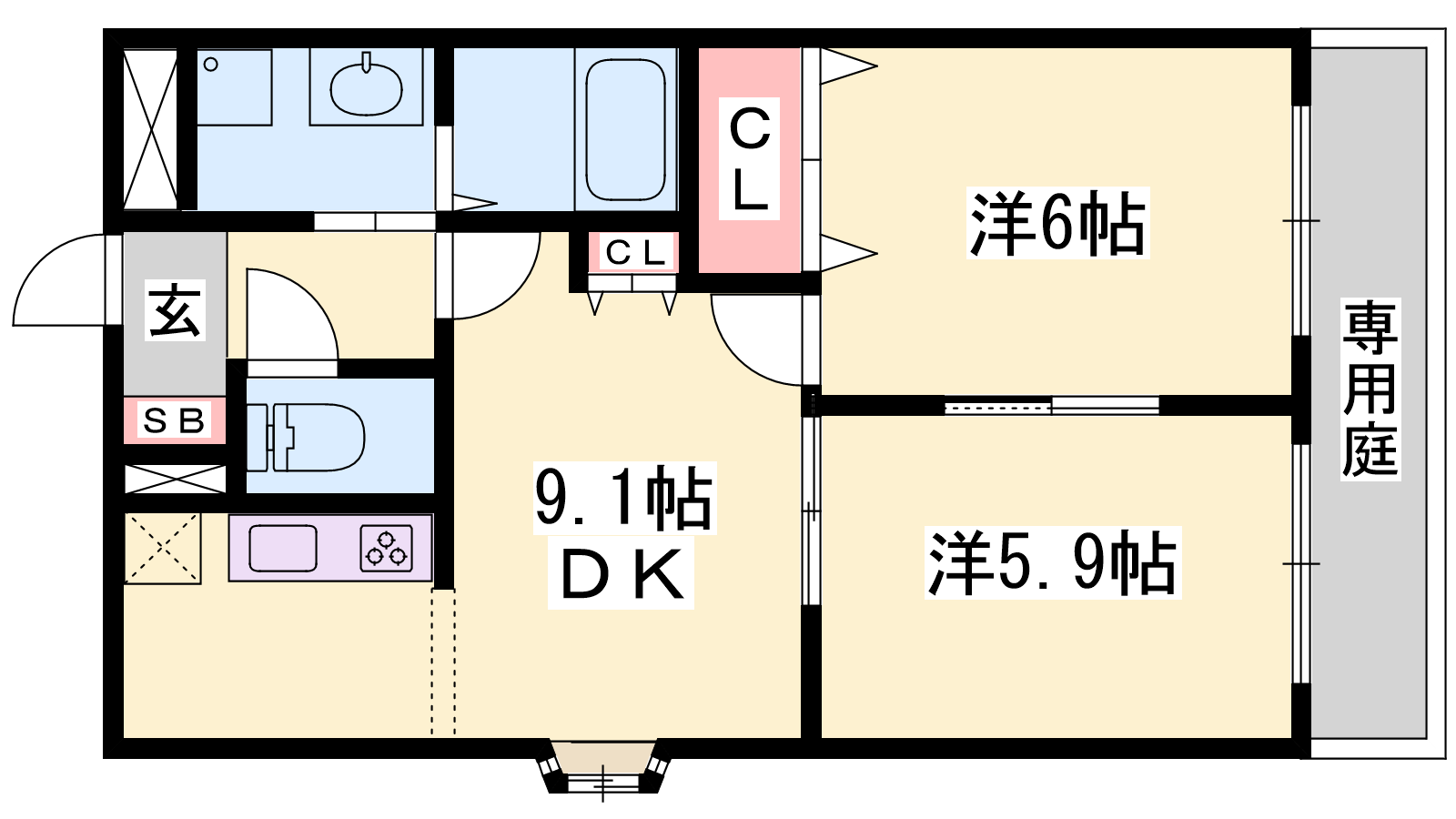 - DK9.1帖、洋室6帖、洋室5.9帖