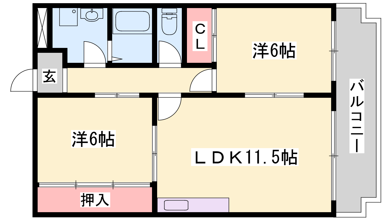 - LDK11.5帖、洋室6帖、和室6帖