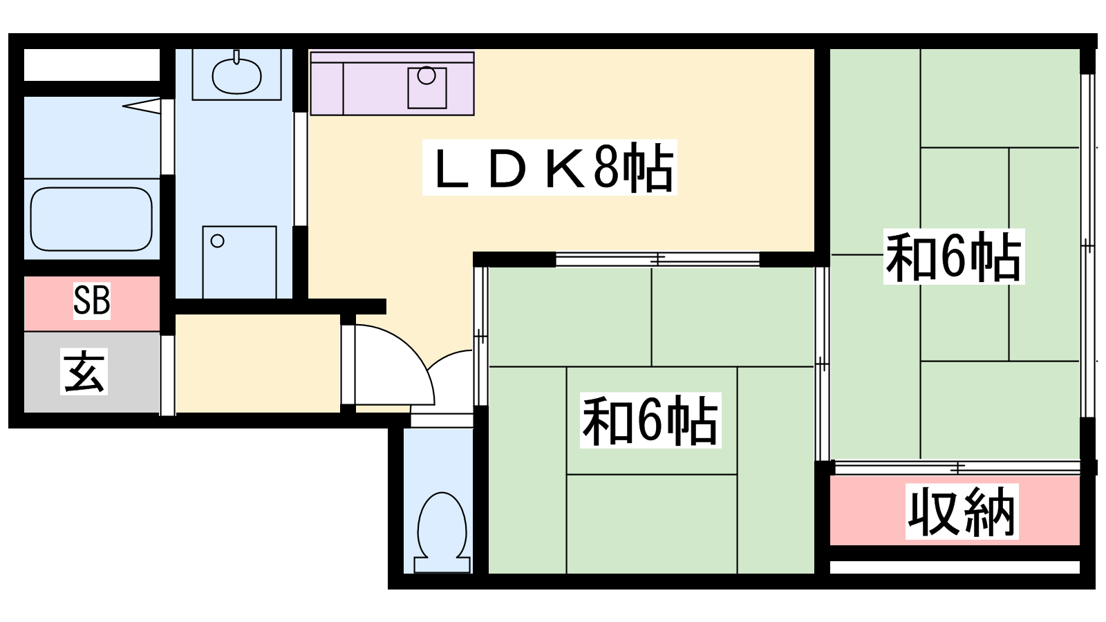 - LDK8帖、和室6帖、和室6帖