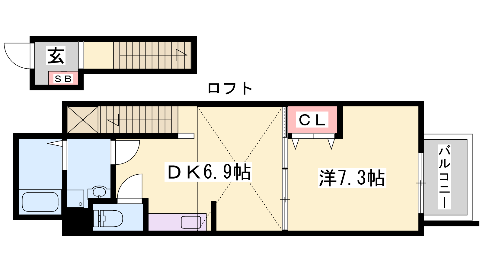 - DK6.9帖、洋室7.3帖