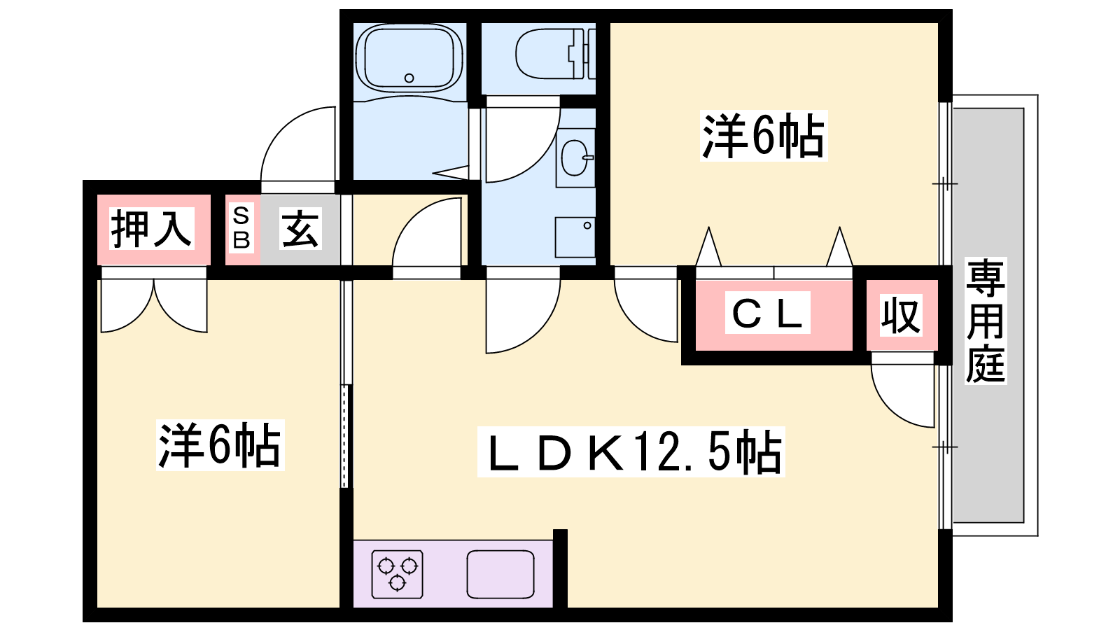 - LDK12.5帖、洋室6帖、洋室6帖