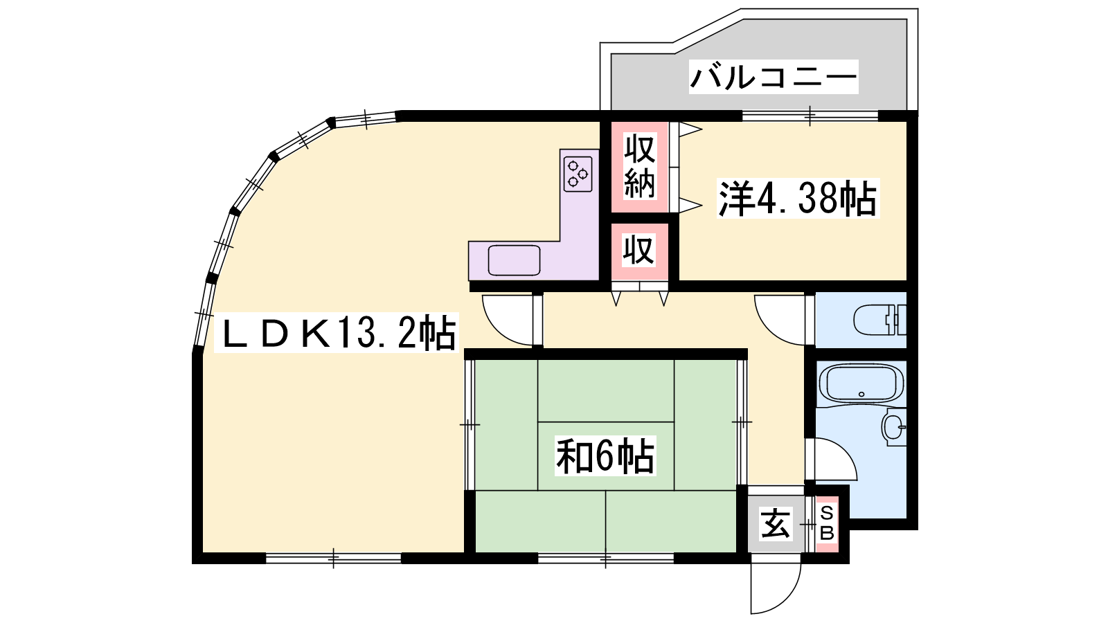 - LDK13.2帖、洋室4.38帖、和室6帖