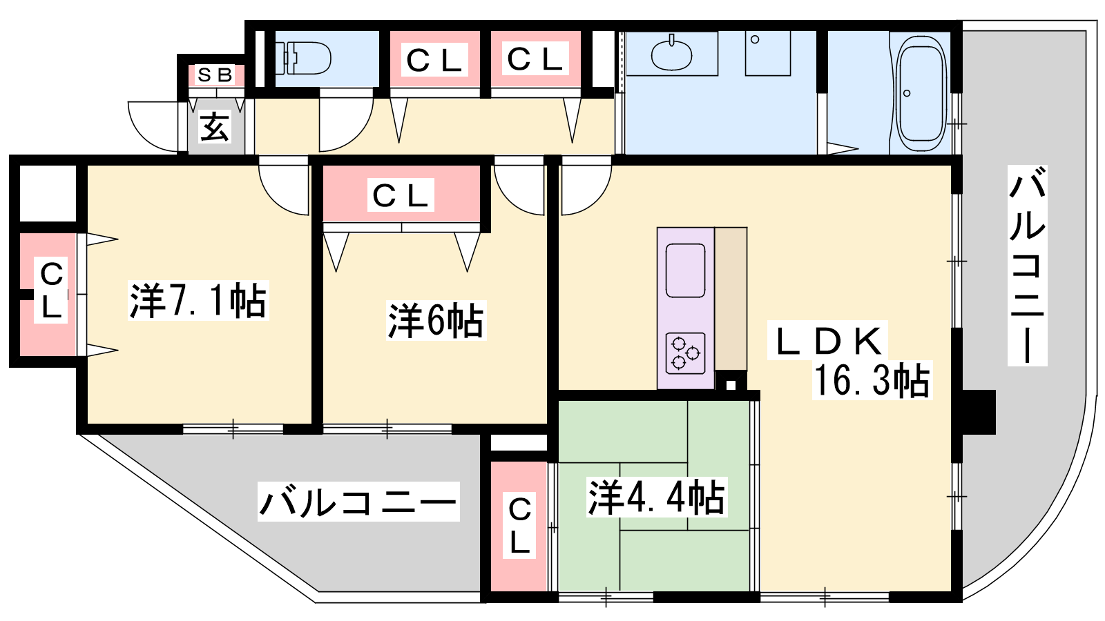 - LDK16.3帖、洋室7.1帖、洋室6帖、和室4.4帖