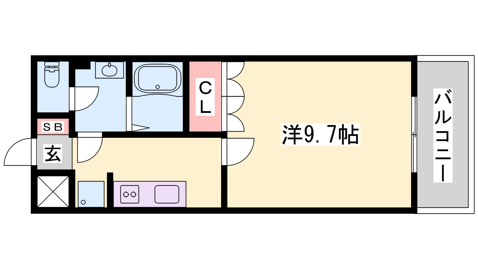 - K2帖、洋室9.7帖
