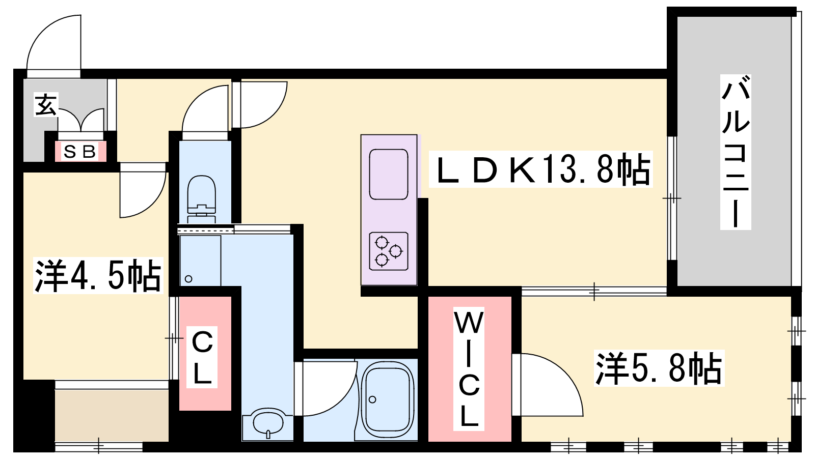 - LDK13.8帖、洋室5.8帖、洋室4.5帖