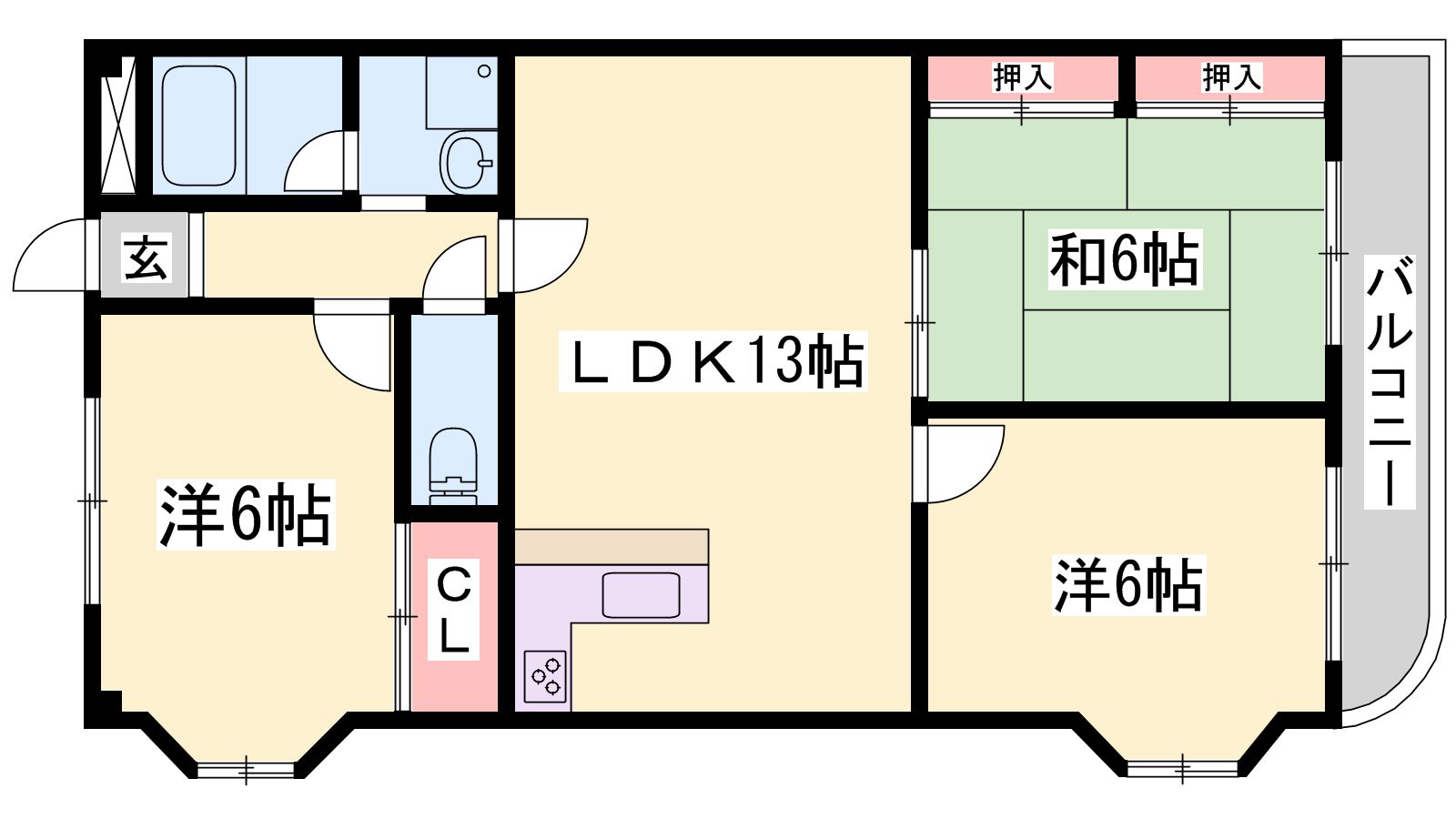- LDK13帖、洋室6帖、洋室6帖、和室6帖