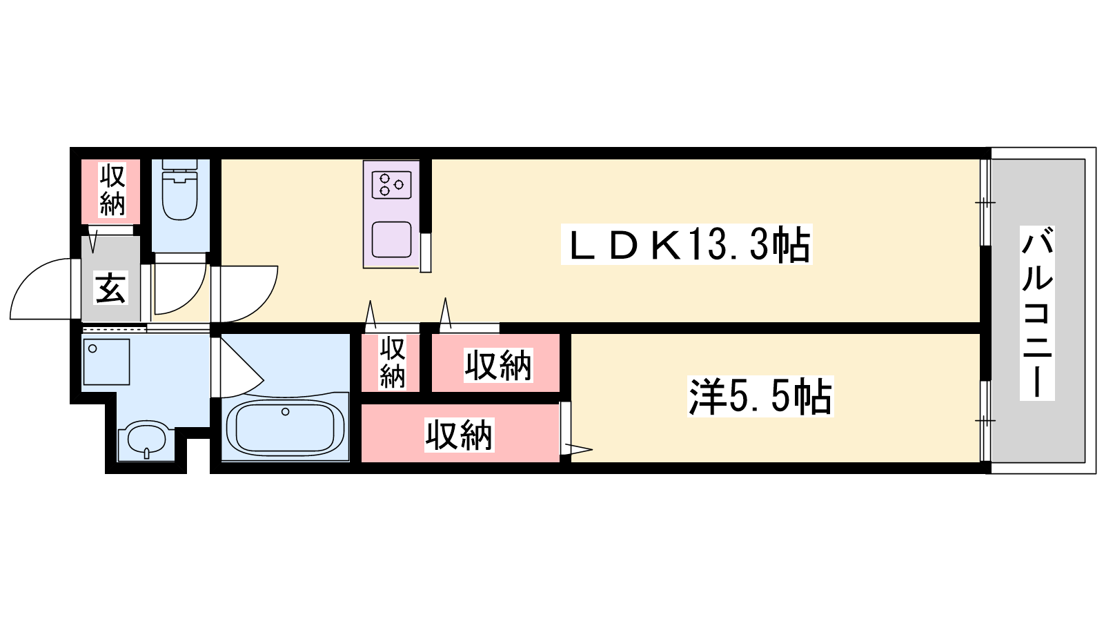 - LDK13.3帖、洋室5.5帖