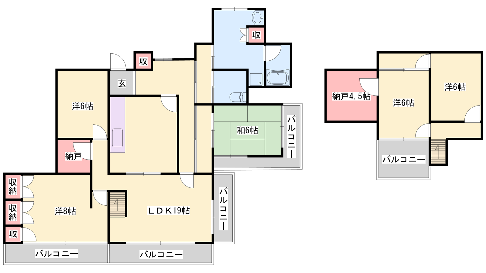 - LDK19帖、洋室8帖、洋室6帖、洋室6帖、洋室6帖、洋室4.5帖