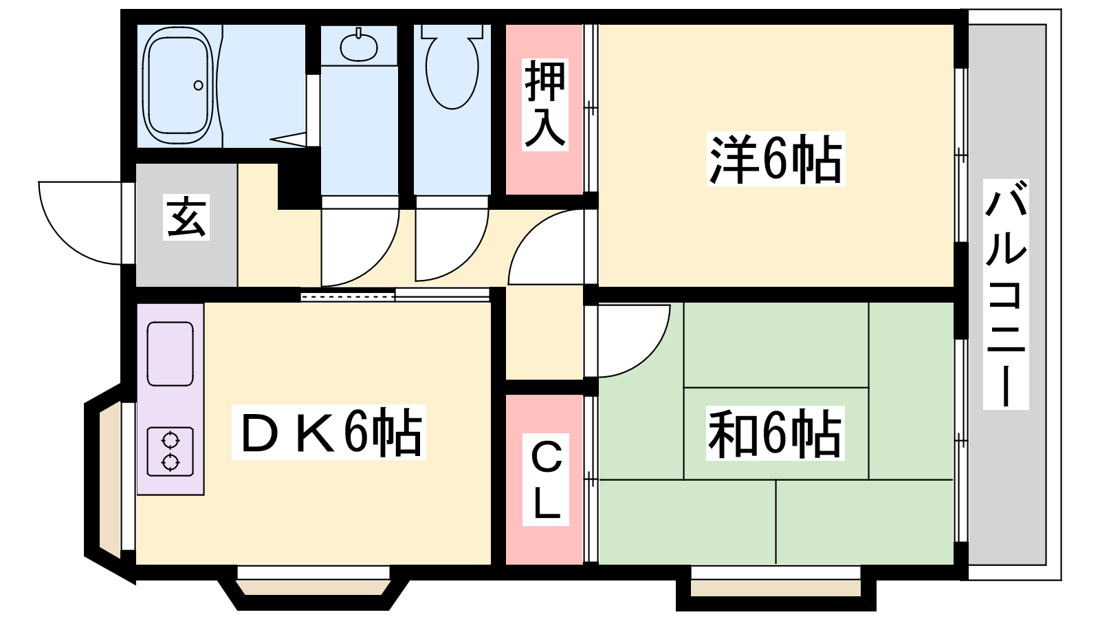 - DK6帖、洋室6帖、和室6帖